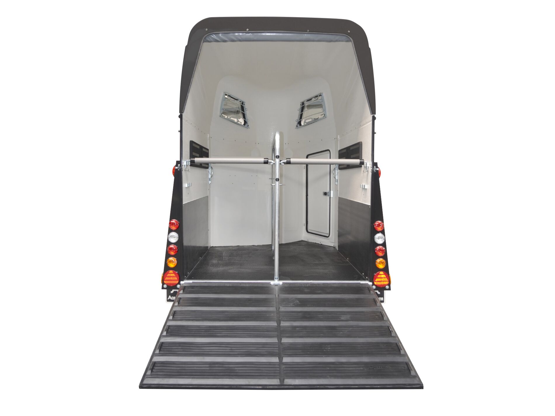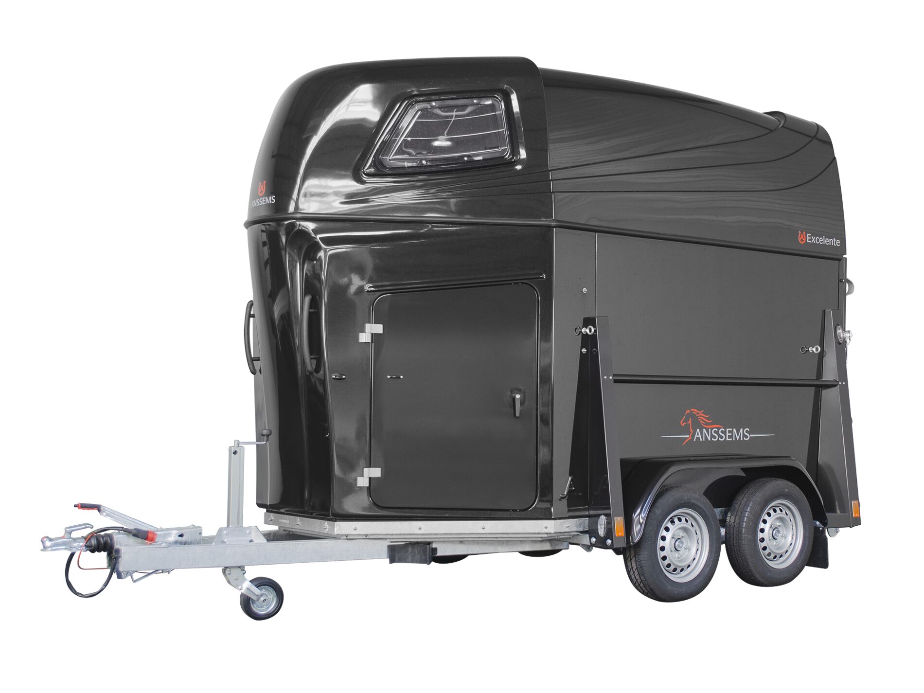 PTH 2000 Excelente – schwarz metallic: Anssems.com präsentiert mit seinem qualitativ hochwertigen Pferdeanhänger ein komfortables und sicheres Produkt für Reiter und Pferd. Unser Pferdeanhänger besteht aus der neusten Polymer-Technik, die zu 100% holzfrei ist. Die unvergleichbare Formgebung sorgt für die beste Aerodynamik und minimiert dadurch Fahrgeräusche und Treibstoffverbrauch. Der extrem niedrige Einstieg über die große Heckklappe, die sinnvoll platzierte Innenbeleuchtung, sowie die einzigartige Boden- und Seitenwandoberfläche sorgen für einen stressfreien Pferdetransport. Zahlreiche, extrastarke Zug- und Haltebügel ermöglichen leichtes rangieren. Zu unserer großzügigen Serienausstattung gehören: schwenkbare und höhenverstellbare Brust- und Heckstangen, drehbare Trennung, Panikschloss, nicht- blendende Innenbeleuchtung, beidseitige Haubenfenster, Heckplane mit Aufrollautomatik, Außenreling zum Pferde anbinden, Antirutsch-und Sichttritt, Rangiergriffe und Automatikstützrad. Elektrischer Anschluss: 13-poliger Stecker.